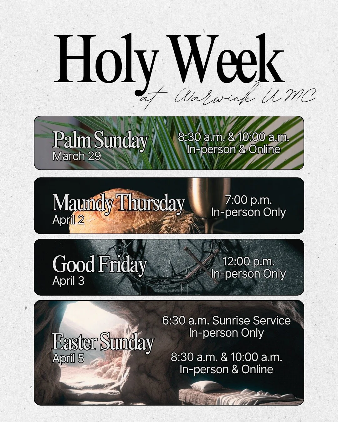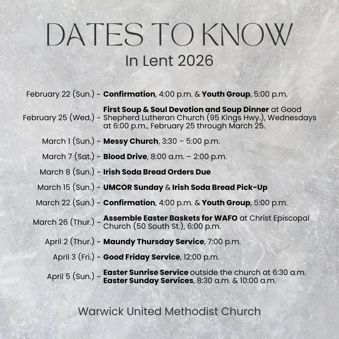 Follow us on social media for all the latest on what Warwick UMC is up to!